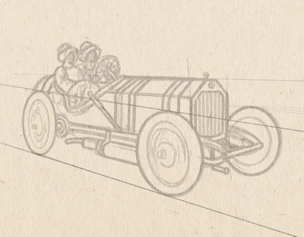 Een belangrijke uitdaging was om de herkenbaarheid van het bestaande logo te behouden en tegelijkertijd de leesbaarheid te verbeteren en de illustratie te verfijnen. Om ervoor te zorgen dat het ontwerp historisch accuraat bleef, heeft hij onderzoek gedaan naar raceauto’s uit de jaren twintig en dertig, met name Bugatti-modellen, om details zoals de constructie van de voorwielophanging en tijdsgetrouwe elementen zoals de versnellingspook aan de bestuurderszijde duidelijk naar voren te laten komen in de illustratie. De volledige uitwerking van Tom is te bekijken op deze pagina van zijn website.